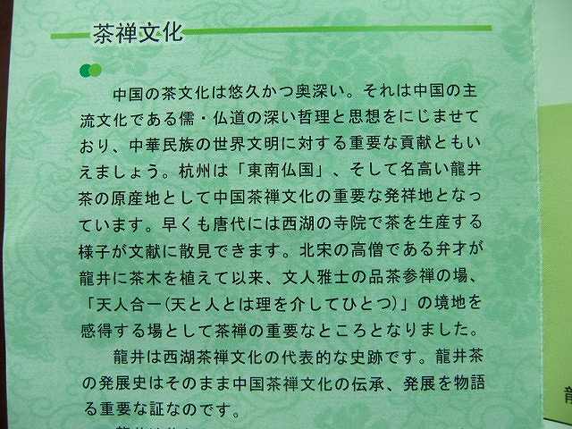 ツアーガイドがすごい居まんする、中国唯一でそれが杭州にあるから。玉泉という植物園に行こうかと考えたけど。ツアーガイドは西湖を歩きながら十分植物を見たから行かなくてもいい。無料で見学できるお茶の博物館にどうですかと聞いてくる。それでここに来ました。