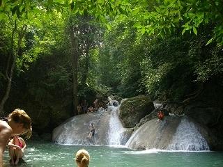 運転手とガイド付きツアーを申し込み出掛ける。山の斜面は湿って滑りやすく、あえて木の根を踏みながら登る。時々手すりが付いたはしごが掛けられて上りやすくしてある。橋も幾つか渡りました。
