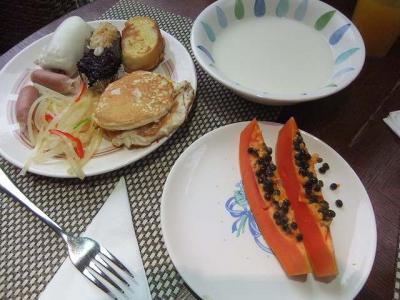 チェックインしたらスタンダードの食事なしの部屋。申し込んだのはランクが上で食事あり。フロントの2人はパソコンをいじっていたが。やがてもう1人が来て言う。「オクトパスサイトには食事ありは無い!スタンダードの食事無ししかない!!」