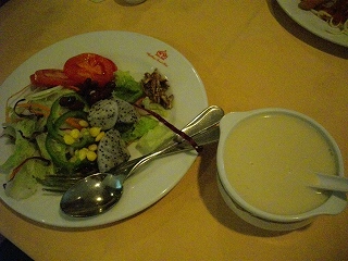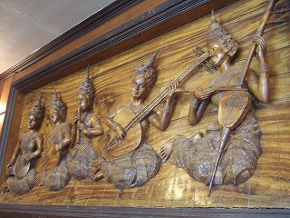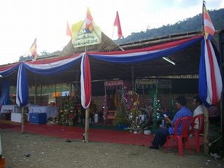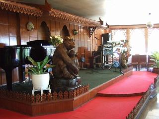 ひまわり畑の観光、ダム湖の観光を終えてから昼食。薄暗い廊下を通り2階に通される。舞台がある。唄のサービスなのかも知れないが14時までカラオケ。4人のおねぇさんが順番に唄う。私たちは食事とりながら聞かせて貰う。渥美二郎の「夢おい酒」タイ語バージョン。全く違和感なくタイに馴染んだ曲です。