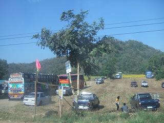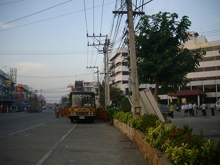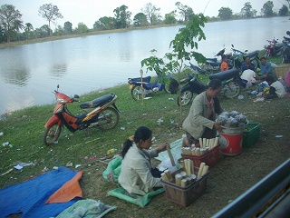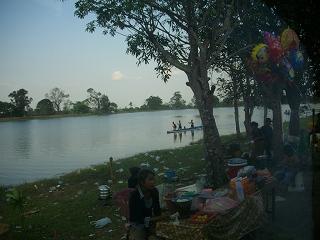 ワットプーの参道てまえ。ツアーガイドのレヌカーさんと地元係員の駆け引き数分間あり。1人20バーツ払えとか言ってる。祭りの日だからとか。でも祭りは夜で、今は祭りの時間じゃないしとガイドは200バーツの寄付だとして手を打ちます。
