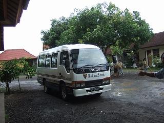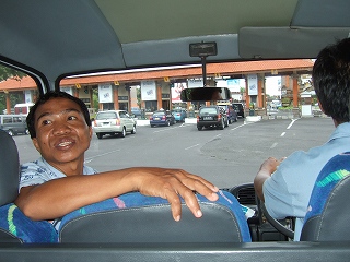 申し込んだタイのツアー会社(A)と請け負ったバリ島地元ツアー会社(B)。Aのシールを胸に貼りBを待ちます。もう間違いなく合えるはず!ところがBが手で持つ紙にはAではなくBの社名表示。分からないはず!!だから30分も会えなかったのか?暑い中不安な長く感じた時間。私たちは荷物を少なくして、トランク無し。鞄は機内持ち込みだけ。荷物が周ってくるのを待たないから。出迎えのガイドが来るよりも。私たちが手続きを終えるのが早すぎたのかな?地元ツアー会社の名前の確認が必要ですね。