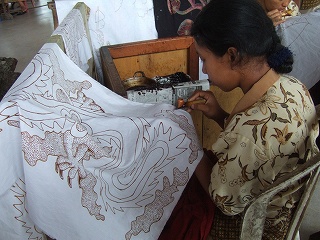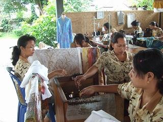 バリ島の空港に迎えに来た車に乗り込んだら。地元ツアー会社のガイドがしきりに誘います。「寄り道しましょう。エステは?ただで見れるとこは?」…あぁ悪いのは「ただ」とか、「半額」に弱い私なんです。ただで見れる所と言って案内されたのはトパティ。宿泊先のウブドに向かう途中にある伝統工芸の村。ここは翌日に予定した半日観光のコースと同じ。初日のガイドは名刺をくれた「プトラさん」。で翌日のガイドは別の人だと言います。ひどいガイドさん。翌日に行くの分かってて同じ所に連れて行くんですから。それにただで工芸技術を見るけど作品を買わねば居心地悪い!ただで済まない。