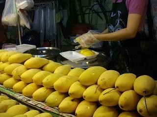 スクンビット通りソイ38はBTS高架鉄道トンロー駅の下。ソイ55とは反対側の位置。夜になるとソイ38の入り口から屋台が並ぶ。まずあるのがマンゴーの屋台。指差して注文して食べ易い大きさに切ってもらう。麺類の屋台が両側に並ぶ。