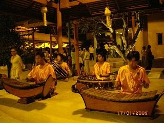 劇場のショーの前に広場で民族舞踊を賑やかに次から次へと見せてくれる。大きな象も待機して乗ることが出来る。河を小さなボートで回り雰囲気を出している。アユタヤ時代の高床式の建物も見学できる。台所もジックリ見ました。