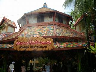 店名はPAE PAYONG=ペーパヨン。チャチェンサオ県CHACHOENGSAO、ワンタラ・ホテルWANGTARA HOTEL&REZORT。このホテルの庭から周った隣のレストラン。写真の立派な看板の意味は後日主人の会社の通訳に教わる。看板のずっとず~~と奥が店。