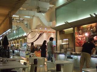 共同のテーブル席があるから買った物を持って行きそこで食べたらいい。中ほどに日本食の店がある。お好み焼きがあってうれしい。焼けるのを待ちながらマンゴーを食べたり。ビールを飲んだり。- 旅行時期
