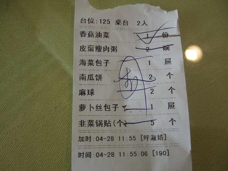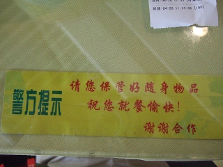 大きな道路をへだてて和平区と南開区の堺にあるショッピングセンター・カルフール。地下鉄駅海光寺駅すぐ。1階でチラシを渡される。通り過ぎたけどまた戻って、その韓国料理店で昼食をとる事にする。さっきチラシを渡してくれた女の子の笑顔は無し。無表情。ザンネン。仕方ない。