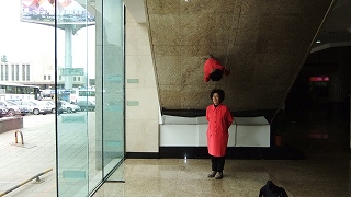 エレベーターで14階まで昇る。スピードが速いせいか、耳が痛い。他の客も耳を押さえてる人が居た。14階は足元も透明で斜めにせりだしている。余計に高さが強調されてすくむ思い。