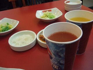 朝ご飯はいろんな、辛くない漬物を美味しくいただきました。ぬるいスープが残念。- 旅行時期