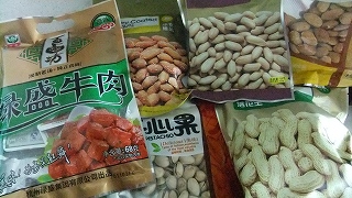 マイクロバスで1時間半も掛かる遠い場所。天津市開発区のイオンモールJUSCO。広々した空間。いけすに魚だけじゃない。かえる、すっぽん、カニもいる。見て楽しめる。アイスクリームが食べたかったけど。レジに並ぶなら買えないなぁ。ワゴンセールのおつまみをたくさん購入。