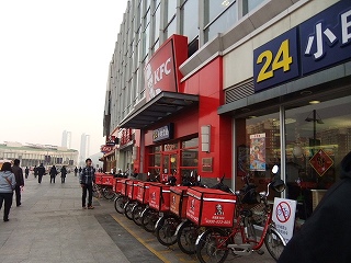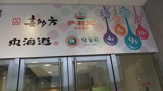 雪が降る中も大勢の人で賑わう。日本人の口にも合いそうな店もある。回転寿司は中国人向き。若者がたくさん居た。女子中学生のグループが賑やか。並んでくる御菓子の皿に手を伸ばしてた。私たちは人間ウォッチング。ベンチが無いのが残念。これから変わるかも知れないけど。