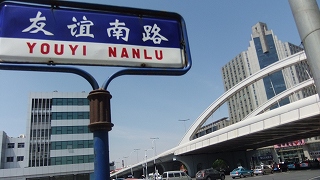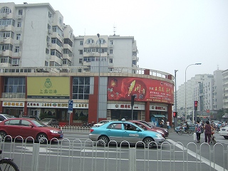 衛津路が南門街大街に名前が変わる交差点にある。いつも渋滞。お店に行くには横断歩道を渡らねばならない。地元民にくっ付いて渡る。左右だけじゃなく。後ろもそして右折してくる車に、前も油断ならない程に車が行き交う。