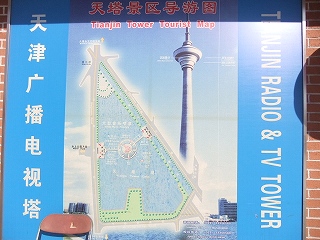 河西区衛津南路。天津タワー=天塔、高さ415m、展望台高さ270m。営業8時から21時半まで。料金50元。ガイドブックには南開区とあるが、地元のフリー誌の地図で色分けされてるのを見れば南開区ではない。