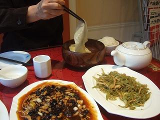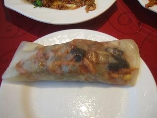 まだ明るいうちの夕食で客が居ない。3階に案内されて外が見張らせる窓際に席を取る。窓枠には大きく隙間があり寒い。店名に春の餅とあるが生春巻きの要領で大皿の料理3種類を皮で巻いていただく。今回ツクヅク思う。お米の取れない地域だからギョウザばっかりなんだなぁ。