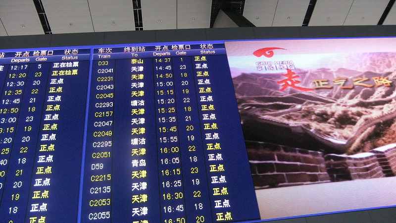 そしてすでに切符が取れた安心感はあるが。乗る時間が問題です。遊びたい時間を欲張り過ぎた。足が疲れたのでもう歩き回るのをやめてベンチで待つ。天津駅にはベンチがないけど。北京南駅は広くてたくさんのベンチがある。大音量のスピーカーのそばのベンチでも横になってる人が居た。- 旅行時期