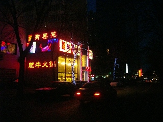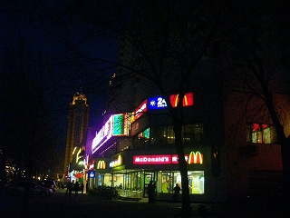 マグドナルドの右の鍋料理店で夕食を取る。写真メニューを指差し注文して美味しく頂く。- 旅行時期