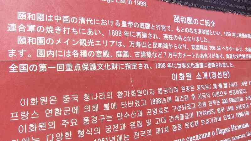 2007年のガイドブックには遊覧船のことが載っている。北京動物園から出て頤和園の南に船着場がある。逆方向は書いてない。地下鉄駅は北門だから。次回の頤和園は南から北に歩いたら良いと考える。でも2010年のガイドブックには遊覧船の事が見当たらない。