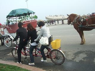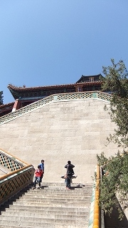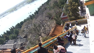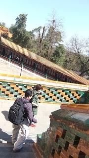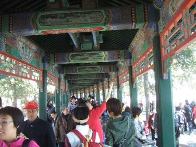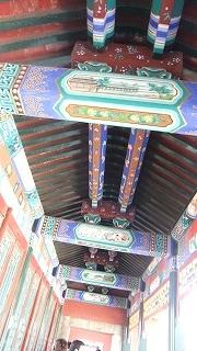 長廊の天井を見ながら歩く。少しは知ってる三国志や孫悟空もあるらしいが。絵が細かくて歩きながら見たのではどれも緑と青でキレイな色あいだとしか分からない。北京オリンピックに向けて塗り直したけど。すでに色落ちし始めてるのだとか。下地がいい加減?絵の具が合わない?研究中なんだとか。でもペンキ塗りの仕事が終わりなく続くから。仕事が有って良い事かな。