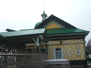 列車は1日1往復らしいが。祝日の特別運行の張り紙があった。ツアーガイドはNHKの木造駅舎という番組が好きと言う。私も生まれ故郷の駅を思い出した。- 旅行時期