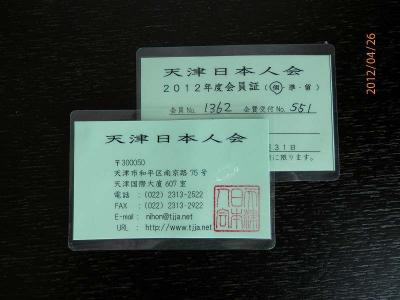 これを読んでしばらくして主人が会社から天津日本人会の会員カードを持って来た。新規も継続も手続きは会社がしていた。1年はとっくに過ぎているが全然知らなかった。年末のアパートの案内にX'masパーティは日本人会会員と注意書きがあったけど。どうせ行かないし。