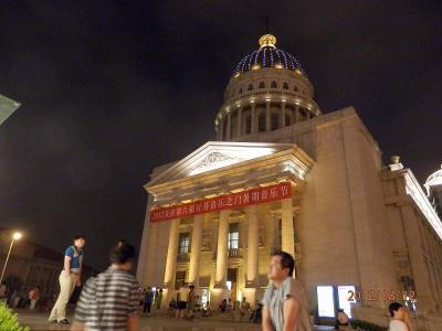 濱江道の教会まえで行われていたのと同じビール会社のビアガーデンが欧式風情街でもやっていたんだ。こちらは規模が大きくて舞台も用意してあった。見ごたえ見栄えがした感じだ。惜しい。ライブハウスのライブは日曜は無いようだ。