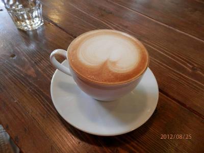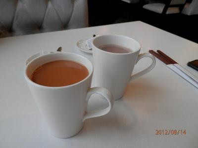 奥に広く、2階もある。椅子がゆったりで、居心地がいい店内。若いグループが次々に入る。料理は油ギトギトのようだ。飲み物だけ注文。コーヒーはメニューに無い。紅茶ともう1つ何か分からずに頼んだら、ココアだった。熱々なのが嬉しい。お皿に砂糖を2袋も置いてあるが。使わなくても充分甘かった。