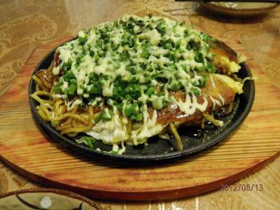 3回目でようやくお好み焼きらしいのが食べられた。といっても焼きそばが入る広島焼きしかない。これよりも、ホントは焼きそば無しが好み。