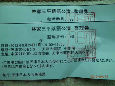 アパートのエレベーター・ホールに開催案内が貼られたのは8月9日でした。けさ中止の案内メールが届く。先週国際大廈で貰ったばかりの整理券は破棄すればよいとの事。ナンバーは98と99だった。この番号は申し込みが少ないかなぁ。主人に休みを貰って夫婦で出掛けるのを楽しみにしていたのに。