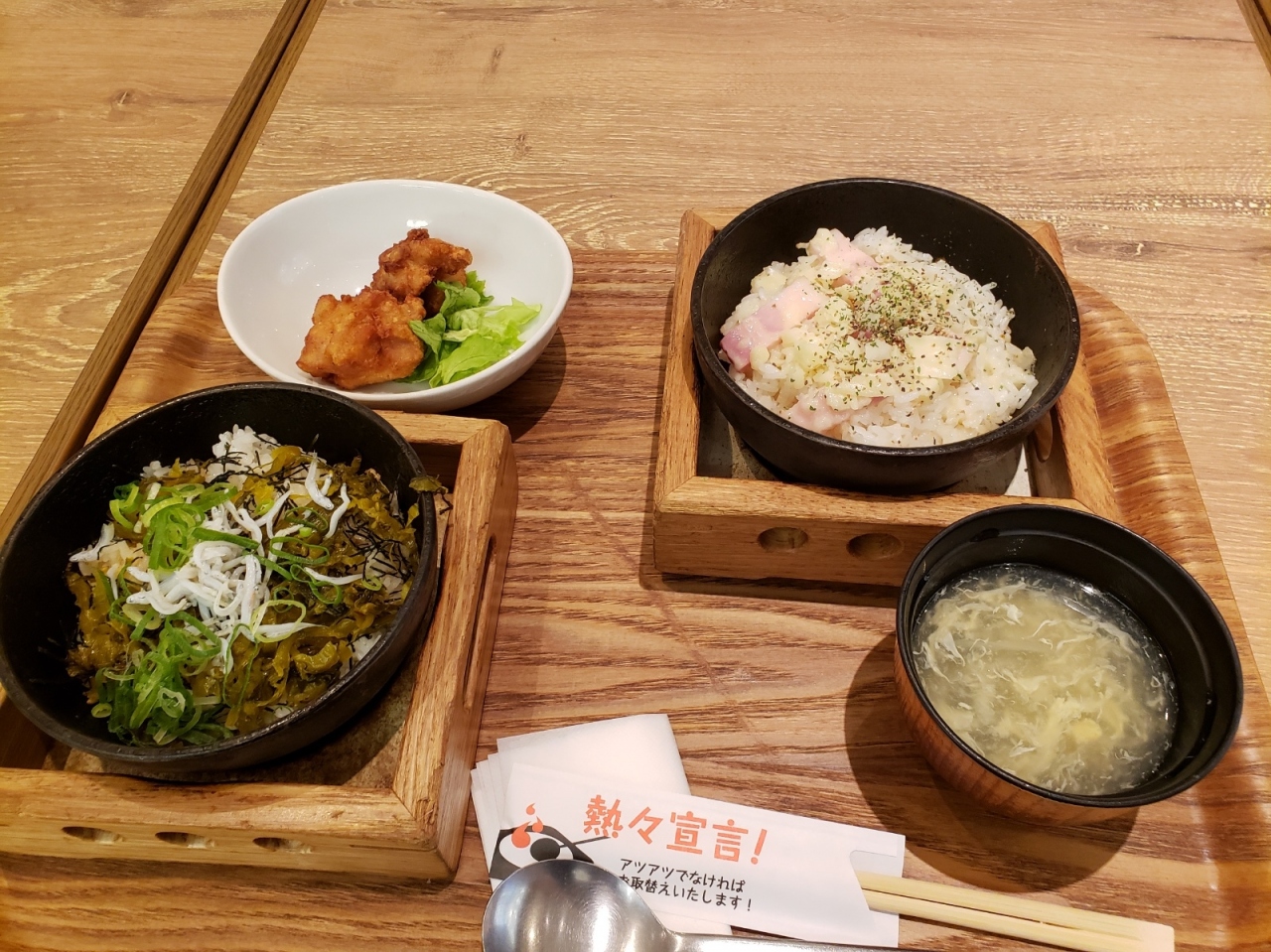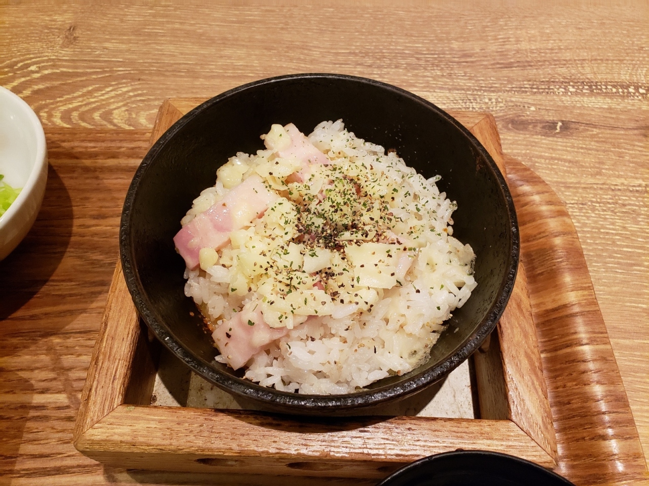 浜松志都呂イオンの中にある中華料理店ですが、中華料理っぽくない雰囲気のお店でどちらかというとイタリア料理みたいな雰囲気の内装でした。メニューも定番的なものもある一方イタリア料理の様なものもあったりして選ぶ楽しみもありました。変わったメニューというのを頼むのもなかなか勇気がいりますが、せっかくなので鎌倉ベーコンと北海道ラクレットチーズのリゾット風チャーハンと国産釜揚げシラスと高菜チャーハンのハーフ&ハーフセットを注文しました。