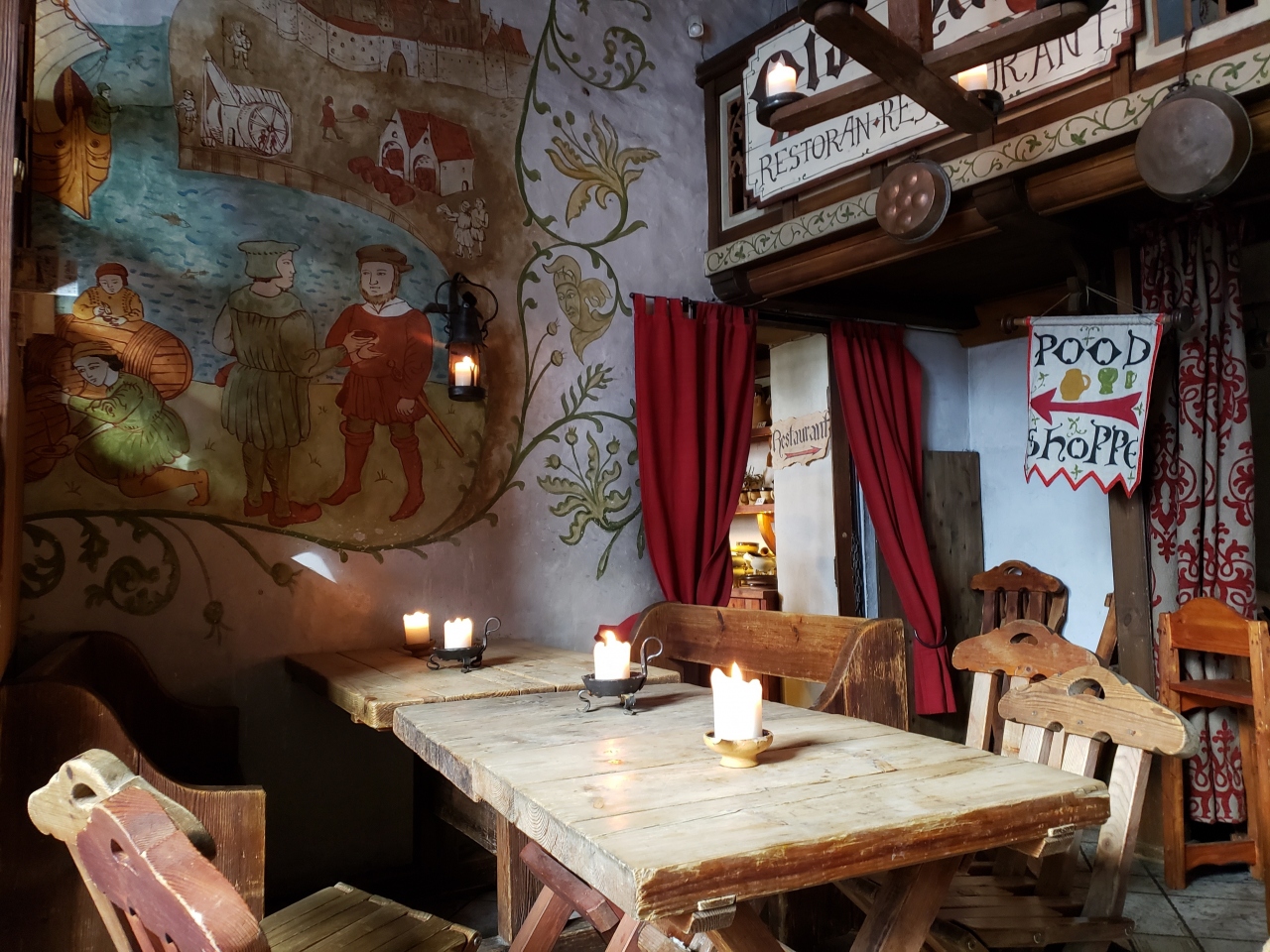 店内はろうそくを使った照明で少しくらいですが良い雰囲気出ていました(投稿している写真はHDRで結構明るく撮れています)。店員さんも民族衣装ですし中世の感じをすごく感じられます。