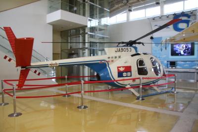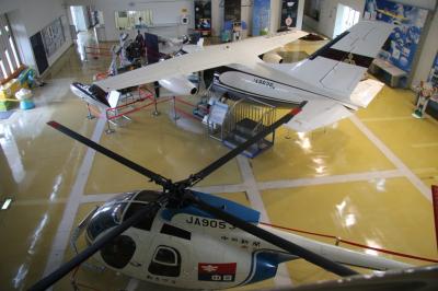 - 回転翼と固定翼が一機ずつ展示、航空についてわかりやすく解説されています。