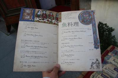店頭に各言語のメニューがありなんと日本語のメニューもあります。エストニアで訪れた料理店の中で日本語メニューがあるところはここだけでした。メニューをそこで眺めていると「もし何かわからないことがありましたら質問してください。」と声かけされて?と思い振り返ると民族衣装を着たエストニア人女性の店員さんがいました。そのまま店内に通してもらい料理について説明を受けメニューを眺めると、店員さんの流ちょうな日本語とは裏腹にいまいち?がつくものも多かったですが、説明を受けていたので迷わずに決められました。