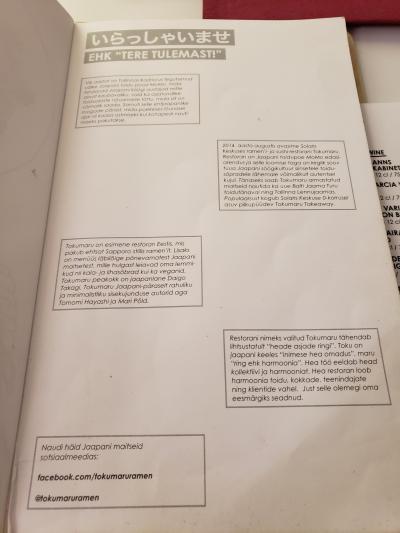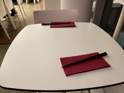 テーブルには箸が準備してあり、割りばしではない箸に本格派を感じます。メニューは入り口にあるのを自分で持っていくタイプですが、エストニア語と英語が混在しているので注意が必要、自分最初エストニア語のを持っていきました。