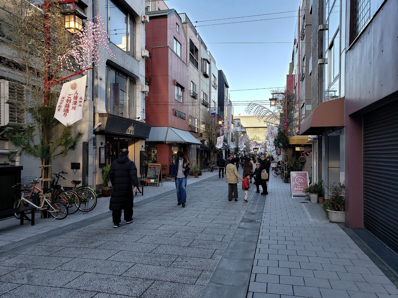 永代通りから深川不動堂までの参道で、その両脇に商店が並んで飲食やお土産の購入などが出来るようになっています。長さは100メートルない程度で商店の数も仲見世ほどは多くないのもあるのと、深川不動堂は浅草寺ほどの混雑ではないのでこの参道も仲見世ほどは混んでいません。年末に訪れましたが、年始はやはり大混雑になるそうです。