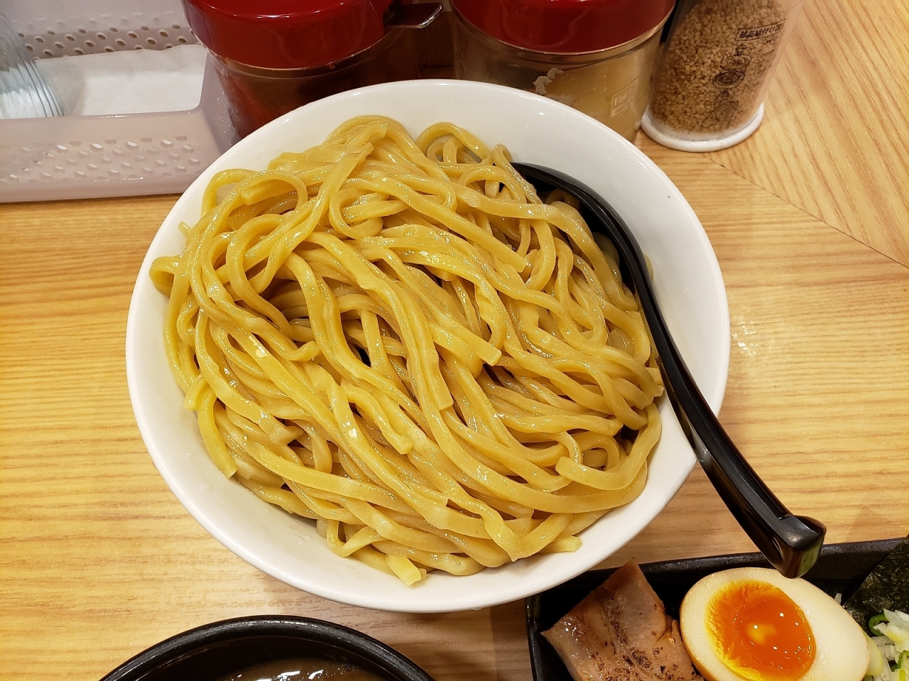 麺は極太麺なので出てくるまでに少し時間がかかりましたが、麺のコシが強く、味も美味しく満足でした。トッピングが別皿で出てくるのも良いですね。