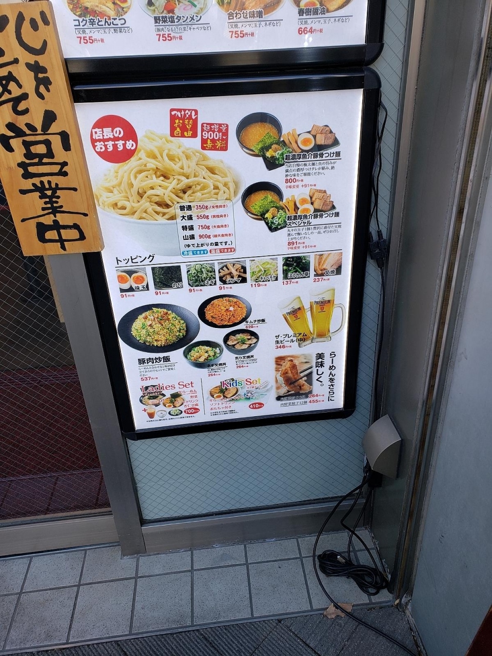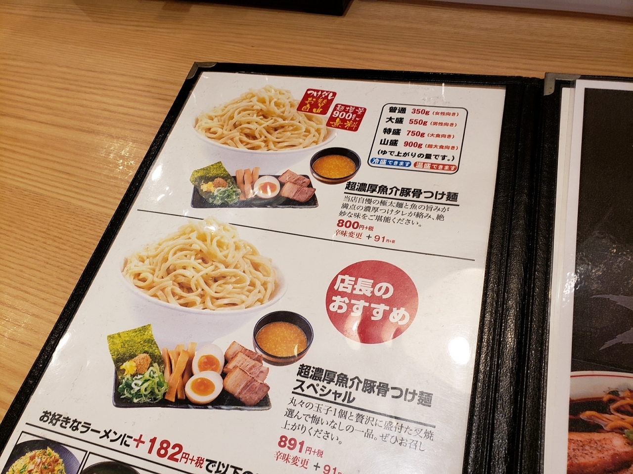 麺の量は普通・大盛・特盛・山盛にわかれていました。麺増量、つけだれお代わりは無料で出来るようです。