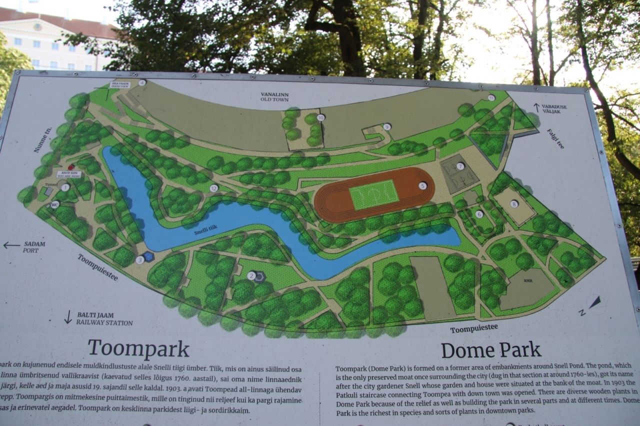 トームペア西側の下とバルト駅の間に位置する公園です。エストニア屈指の観光地であるトームペアとは目と鼻の先ですが、大きな高低差がありトームペアとの移動は公園の端に位置するパットクリ階段を使うしか無く、トームペアの喧噪が嘘のような自然豊かな場所になっています。彫刻があったり庭園の池があったりしますが、どちらかというと観光客というより地元の人々の憩いの場になっています。また南側にはグラウンドやテニスコートがあったりするほか、公園内をジョギングする人も居たりと運動スポットになっているようです。