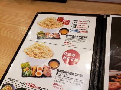 メニュー見て家系ラーメンとつけ麺で悩みましたが、超濃厚豚骨つけ麺特盛を冷盛で頼みました。年末の寒い時期でしたがつけ麺を冷盛はこだわりです(笑