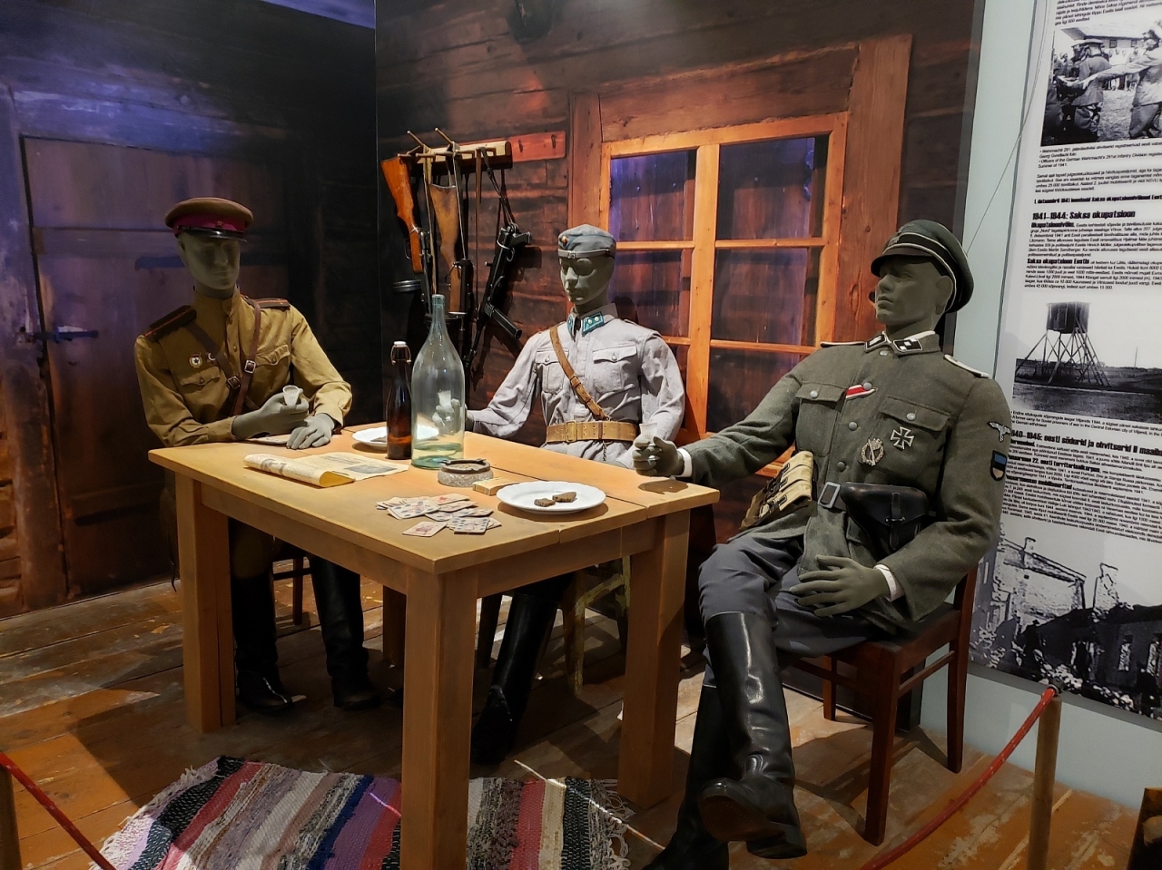 一番印象的な展示は、第二次世界大戦中にソビエト・ナチスドイツ・エストニア独立運動の陣営で戦っていたかつての友人が、密かに3人で合い密会をして語り合ったという場面です。大国に挟まれた小国という運命というものを感じてしまいました。