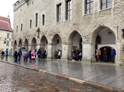 ラエコヤ広場の中心的存在で雄大な外見を誇っているほか、正面の張り出し屋根の下は中世のハンザ商人達が雨をしのいだスポットだそうです。偶然ですが私も豪雨に見舞われたのでその地で中世の人たちと同じように雨をしのぐことになりました。- 旅行時期