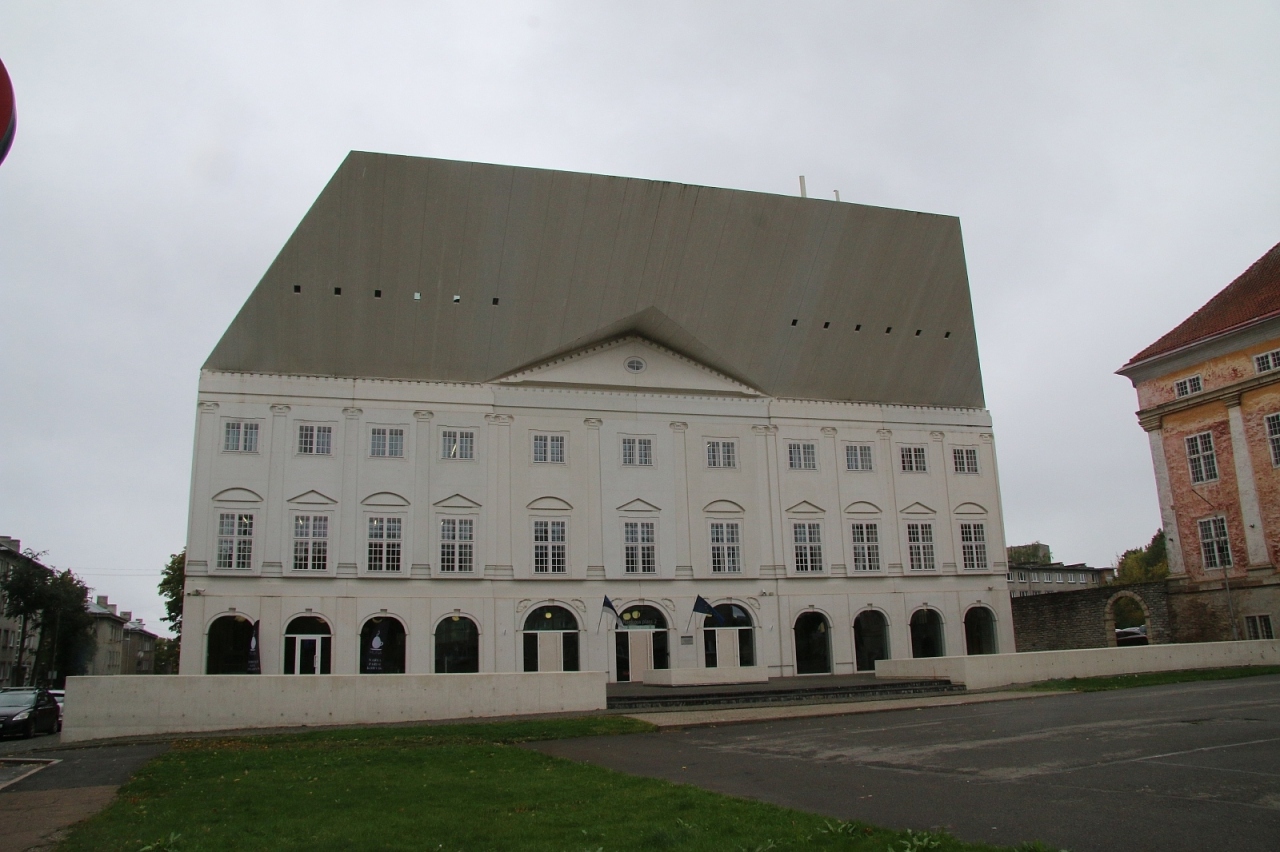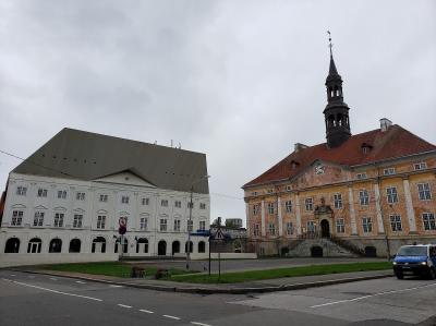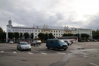 隣接する変わった形の建物はタルトゥ大学ナルヴァ校舎です。