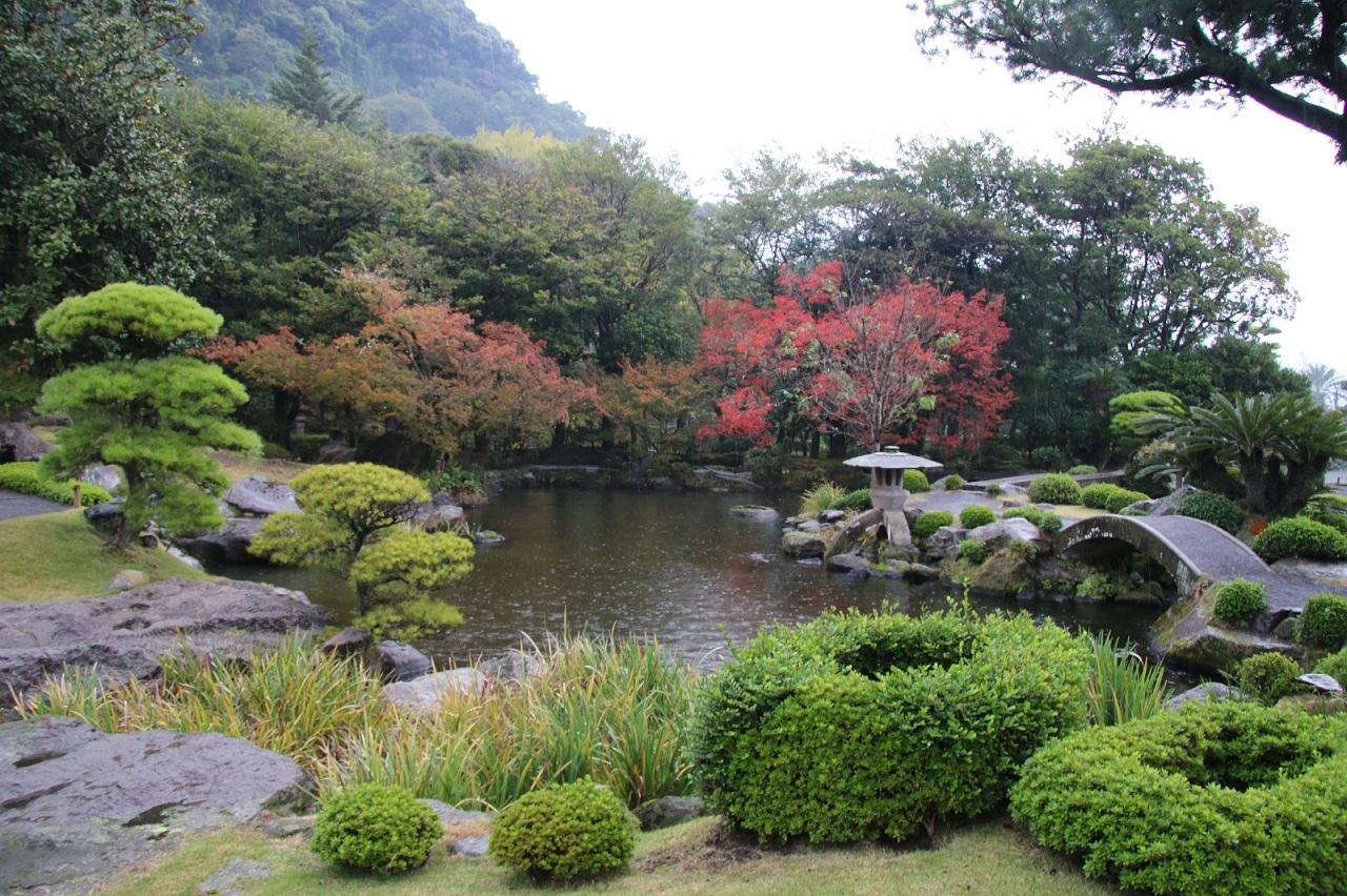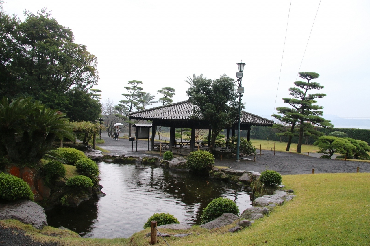 島津氏が江戸時代初期に造園した物が始まりで別名磯庭園とも呼ばれています。幕末にはこの横の時に集成館事業を起こし薩摩藩の近代化を図りました。明治初期には鶴丸城が焼失したため島津氏が移り住みましたが後に新政府の方針で東京へ転居し当主不在になっています。
