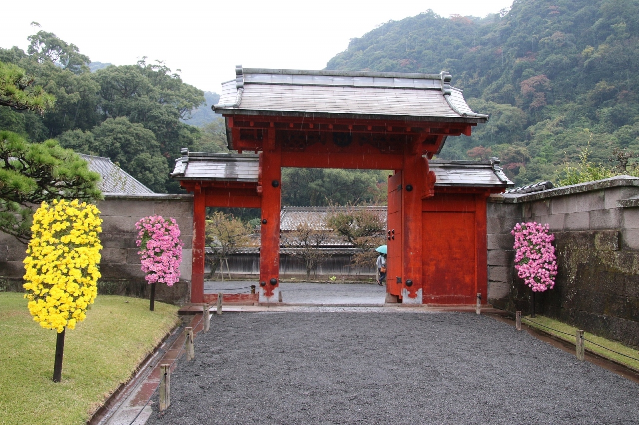 現在の国道10号線に面した位置に立っていて桜島と門を合わせて撮れるため天気の良い日には人が集まりそうです。ちなみに現在では仙巌園の入場ゲートは別にあり、正門は外に出ることは出来ますが道路との間には柵がありアクセスには使われていません。- 旅行時期