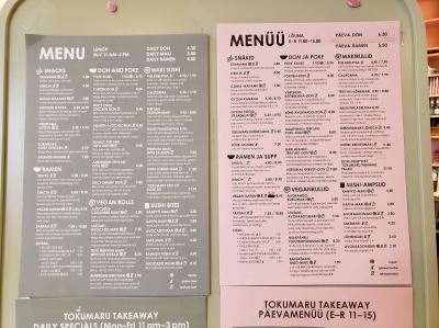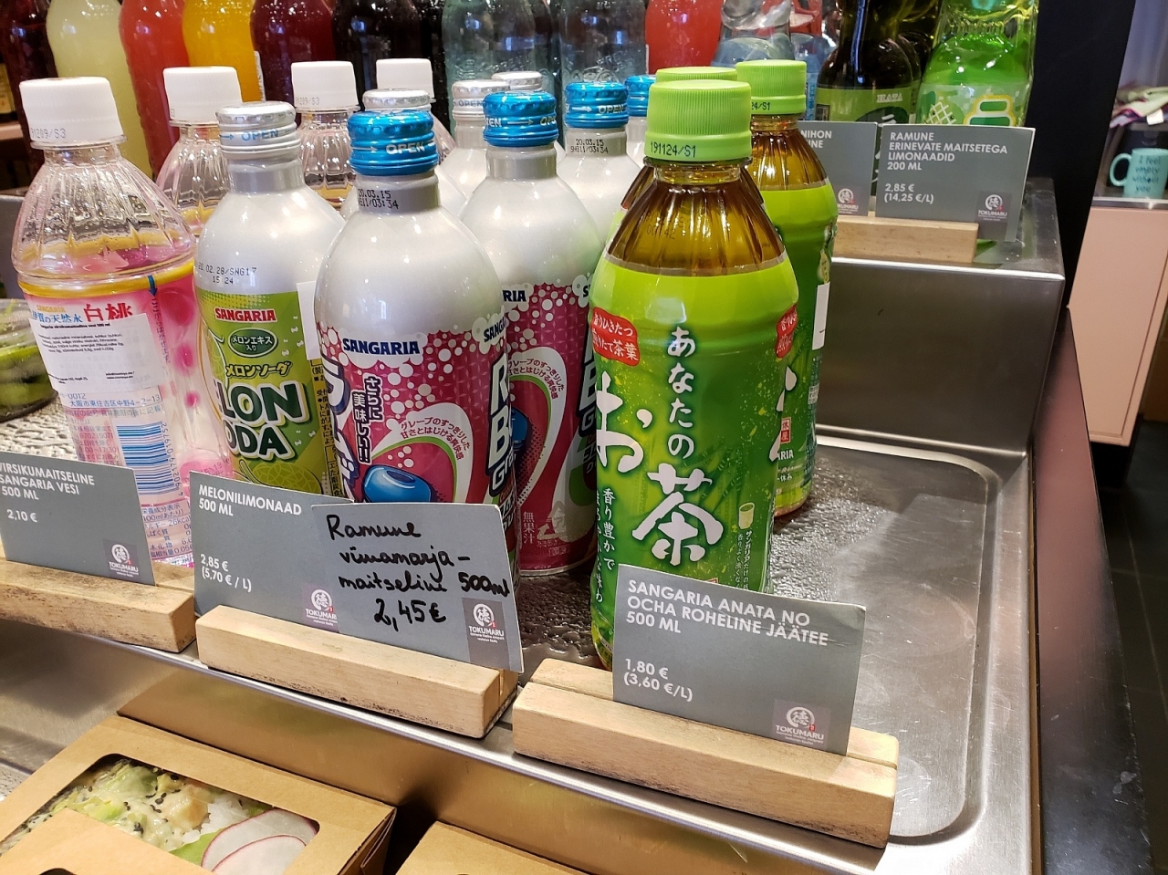 エストニアのTokumaruというとソラリスの3階にある方が有名ですが、同じソラリスの地下にはTokumarutakeawayという寿司など軽食の持ち帰りと日本の調味料などが売っているお店があります。3階にあるのわからずさまよっていたら見つけたので入ったのが真相ですが・・・。持ち帰りだけではなくカウンター席で食べることも出来る仕様で、ここでTANTANのラージを注文しました。サンガリアのお茶も売っていたので購入。1本1.80ユーロでした。