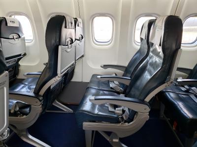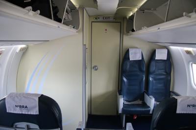 シートピッチは狭くかなり窮屈ですが、1時間くらいまでなら耐えられるかなという感じです。大柄な欧米人は少し辛そうに見えました。ATR72は搭乗口が後ろにありますので、到着後早く降機したい人は後ろ側の席を取ると良いと思います。トイレも機体後部にあります。まあこの路線だとトイレに行く時間というのはほとんどないとは思いますが・・・。