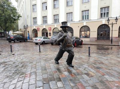 旧市街南部にある煙突掃除夫の像です。正直なぜここに、そして煙突掃除夫の像があるのかわかりません。大雨で観光客があまり歩いていない状況だったのもありますが、他に足を止めてみている人はいませんでした。像の鼻と制服のボタンがピカピカだったので触ると良いという言い伝えがあるのかもしれません。