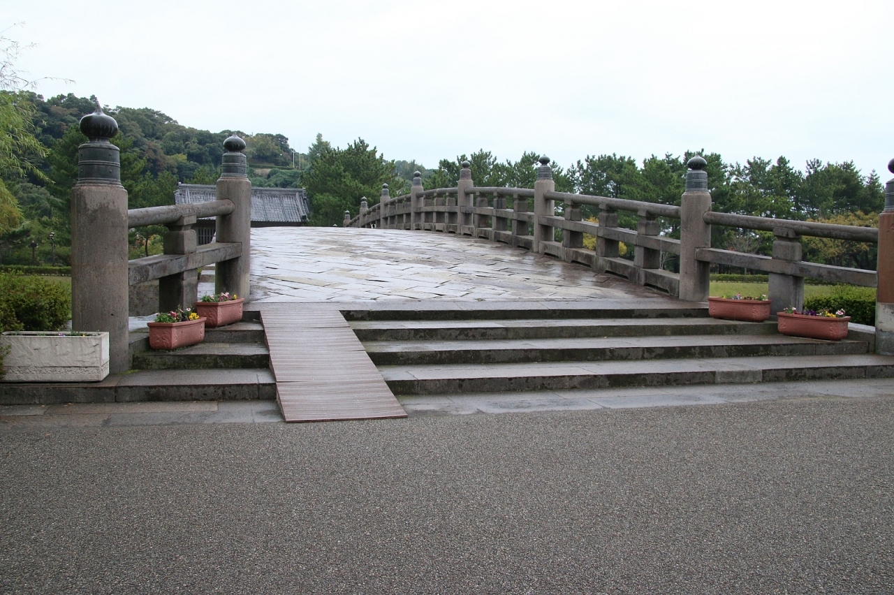 甲突川にかかっていた5つの石橋のうち水害で崩壊するのを免れた西田橋、高麗橋、玉江橋が移築された公園です。隣接して石橋記念館もあり石橋の構造や建築方法、移築方法やそれにまつわる話などを解説しています。石橋は川を模した水辺の上に造られていて橋によっては下に入り構造を見学することが出来るようになっています。