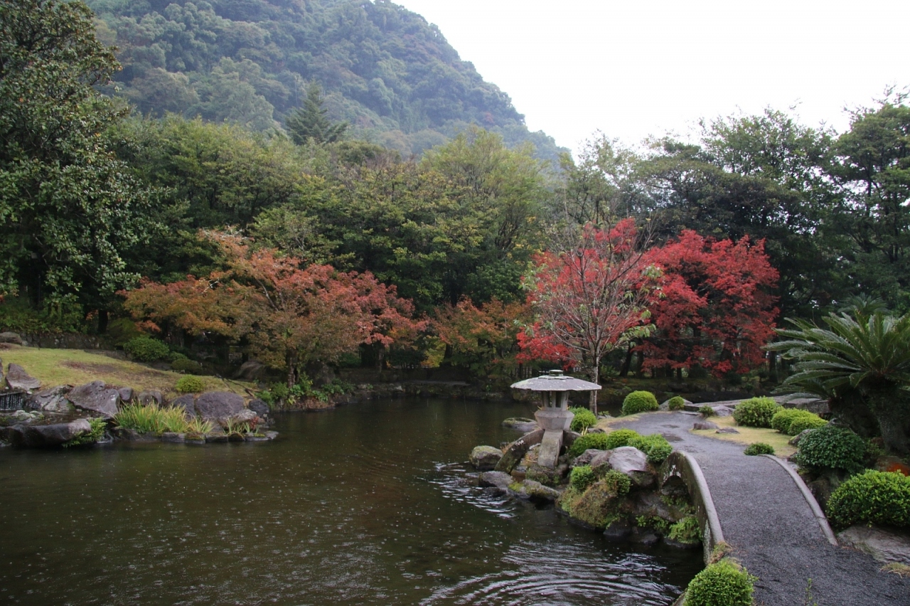 たぶん御殿から見るのが一番綺麗なんでしょうね。時間が合わず御殿内には入らなかったので庭園内を歩いて散策しました。冬に入る直前の木々の色がすごく綺麗でした。橋がかかっていて橋を渡って散策することも出来るので池の周りをじっくりと見ることが出来ました。