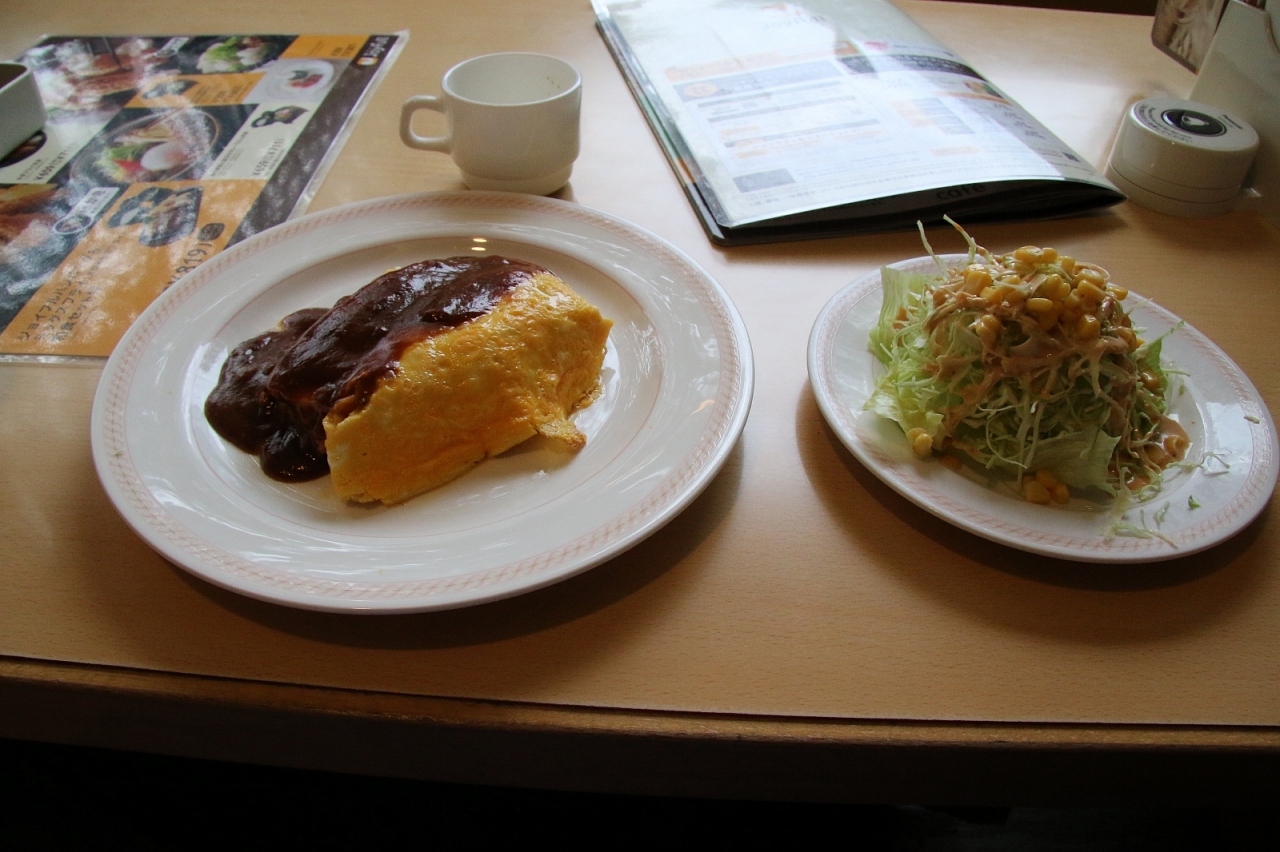 デミグラスソースのオムライスとサラダを選択。ファミレスにしては若干待った気もするけど一人だったからそう感じたのかもしれません。関東には少ないお店なので初めて入りましたけど、味も美味しく店内も落ち着いていて良かったです- 旅行時期